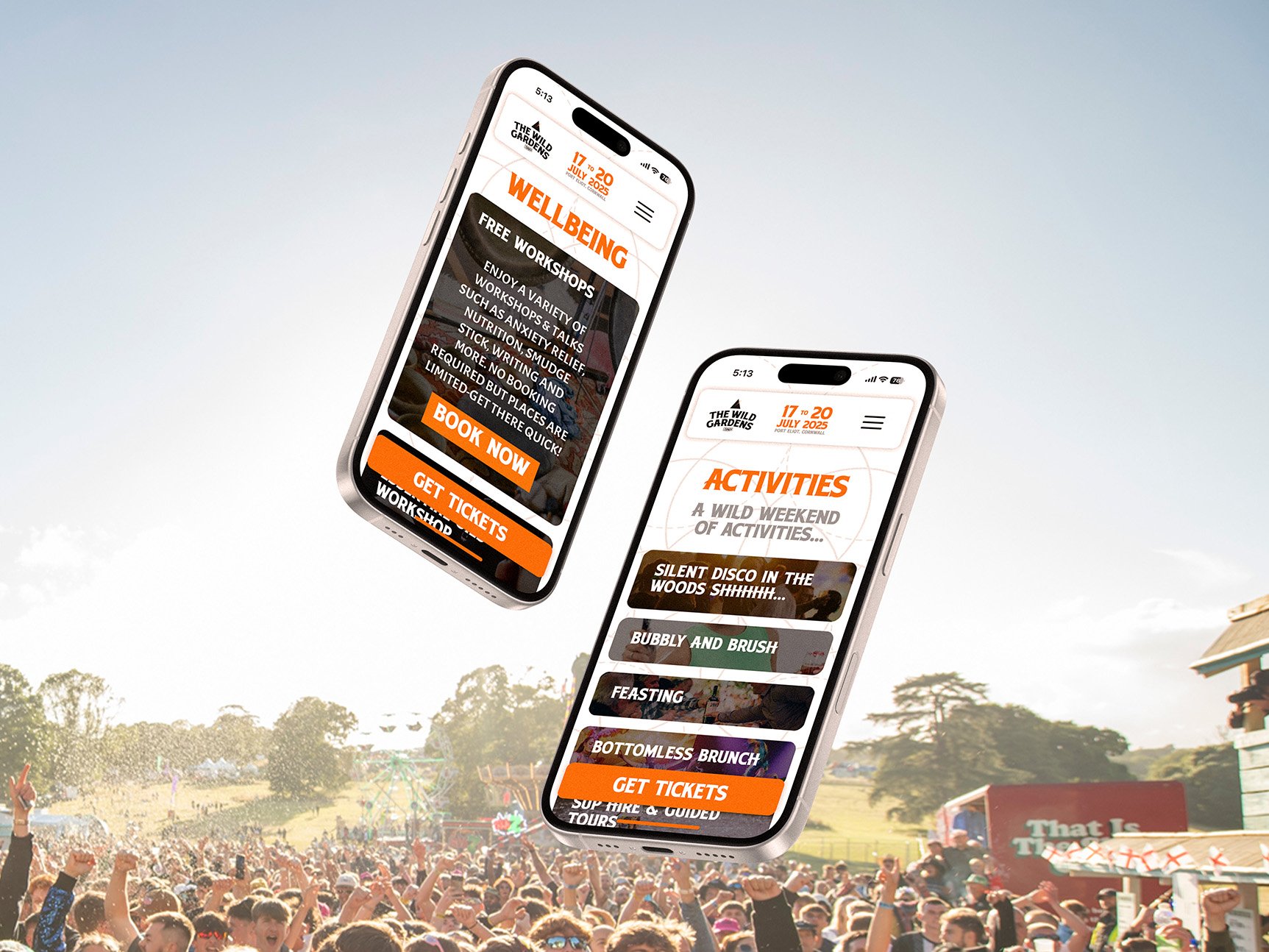 Kicking off in 2023, The Wild Gardens has quickly become one of the most exciting music-meets-wellness festivals in the South West. Bringing together music, performance, and creative experiences in a breathtaking outdoor setting, it needed a digital presence that could match its magic. We were asked to create a bespoke, animated and simple to navigate site that embodies the Wild Gardens energy–and so, we did just that…