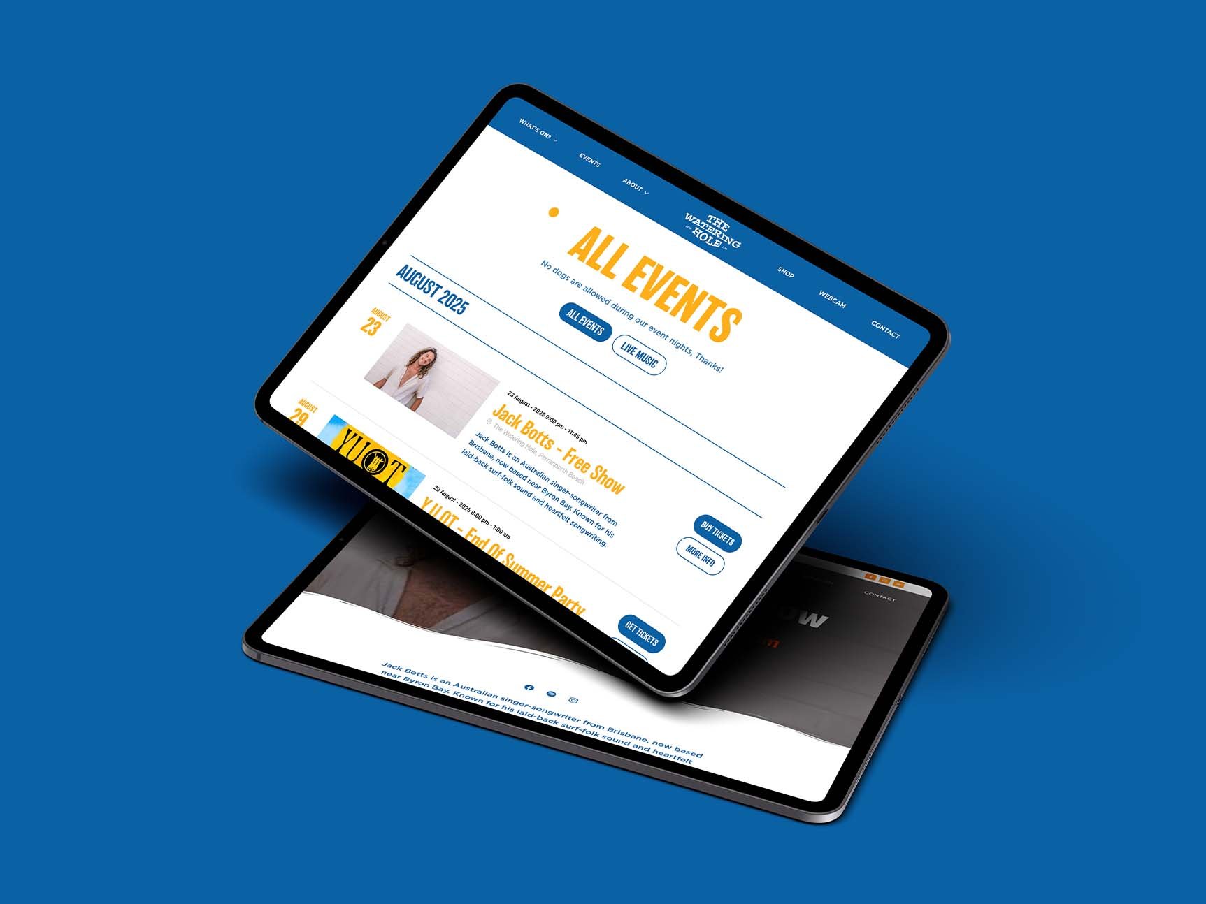 Once a modest beach shack founded in 1978, The Watering Hole has since blossomed into a premier beachfront bar and event venue. Tasked with revitalizing their online presence after over 10 years of stagnation, our mission was to align and update their digital identity with their chic beach bar image, draw in a broader audience for their live events and set up an online shop for their coveted merch.